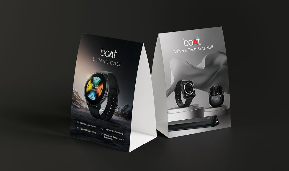 Product Creatives for the electronic brand, boAt. From captivating teasers and impactful launch creatives to standees, and eye-catching tent cards, I've worked on product launches for both online and offline markets.